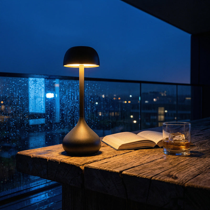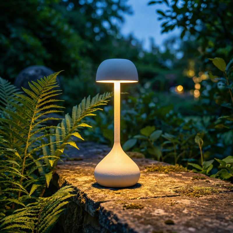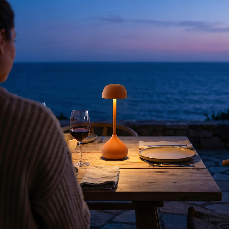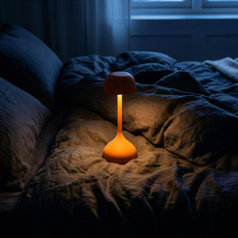 Nomadic Anchor: A cordless, rechargeable core allows this sculptural piece to move with you—transforming any surface, from a bedside table to a dining terrace, into a momentary sanctuary.
