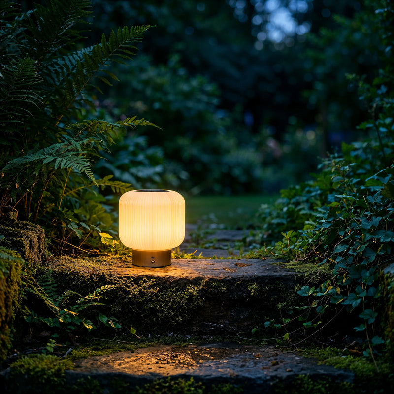 In the "Blue Hour," The Guardian serves as your anchor. As the outside world fades into deep twilight blues, this lamp creates a contained, intimate sphere of Warm Amber light. The fluted glass breaks the beam, casting long, soft shadows that mimic the flickering of a candle, but with a steady, electric consistency. It is the only light source needed to turn a cold corner into a sanctuary, perfect for a bedside table, a solitary reading nook, or a quiet hallway greeting.