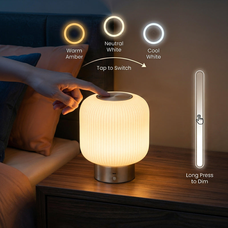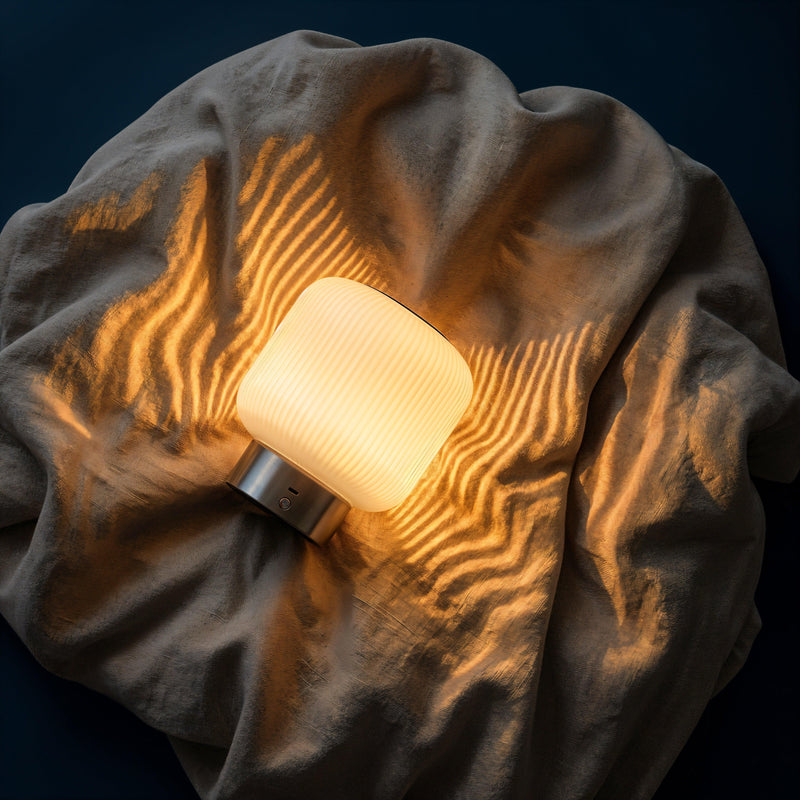 Nomadic Warmth: A cordless, rechargeable design allows this vessel of light to travel with you—from a bedside vigil to a quiet dinner on the terrace.