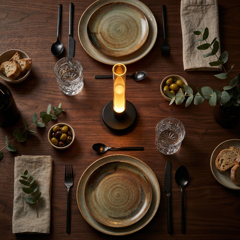 A vessel of light, contained. The Vitra is a modern reimagining of the ancient candle, stripped of wax and wick, leaving only the essence of the flame. Drawing inspiration from laboratory precision and architectural columns, it features a pristine borosilicate glass tube that encases a solid core of light. It is not merely a portable lamp, but a tool for defining atmosphere—where the light source is protected yet visible, offering a sense of safety and permanence. Even when unlit, the transparency of the glass and the solidity of the base create a quiet, sculptural presence that speaks of clarity and order.